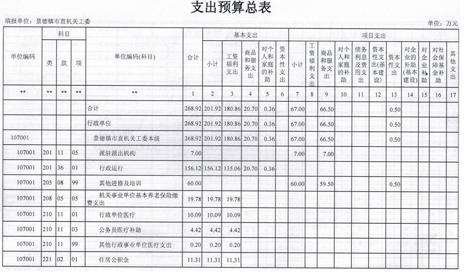 景德镇市机关工委2019年部门预算