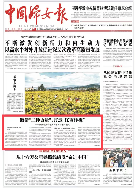 《中国妇女报》头版报道:江西省推动移风易俗工作走深走实
