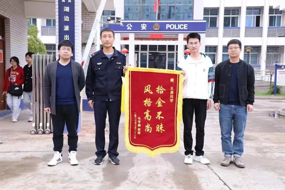得知真相后,小王主动将25万元退还给了冯先生,“没想到25万元这么快就回到自己的银行卡,非常感谢民警和王同学帮忙。”第二天,冯先生来到湖边派出所,握住民警的手一个劲表示感谢,并委托民警为小王同学送上一面“拾金不昧风格高尚”字样的锦旗。